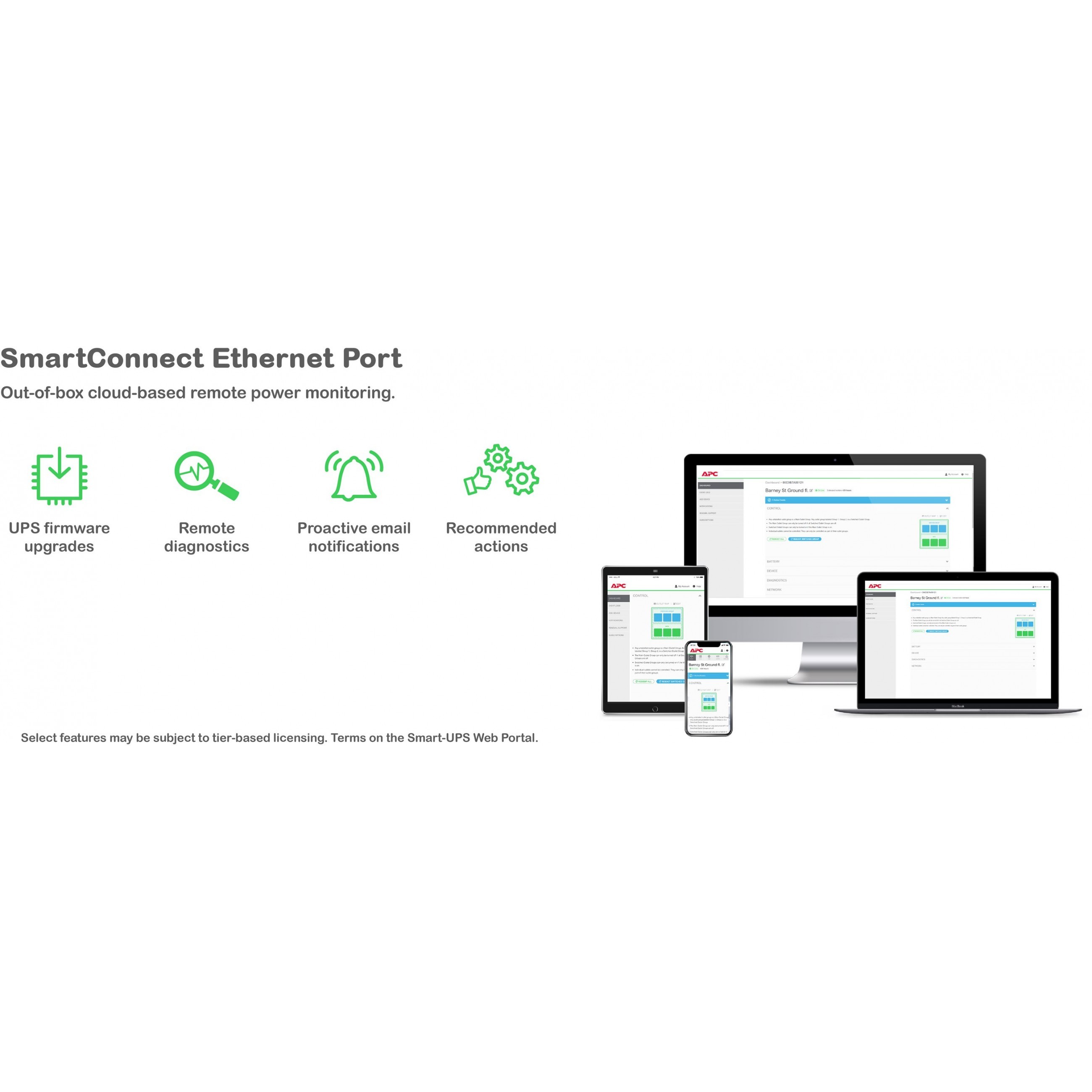 1000VA/700W Line-Interactive UPS with SmartConnect, 8 IEC C13 outlets, LCD, USB & RJ-45 ports, RBC6 replaceable VRLA battery, 10 ms transfer, 41 dB noise.