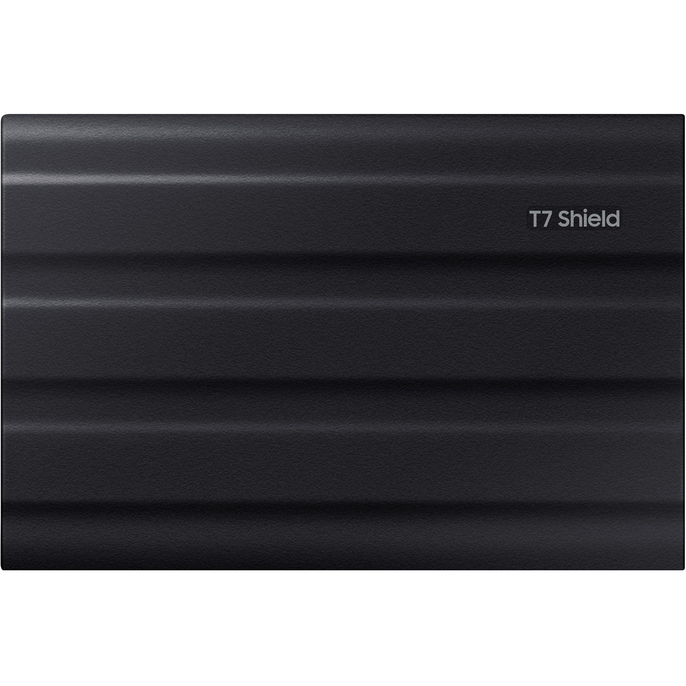 Samsung T7 Shield MU-PE2T0S — 2TB portable SSD, USB-C (USB 3.2 Gen2), up to 1050MB/s read / 1000MB/s write, password protection, rubberized shock/dust/water-resistant, black.
