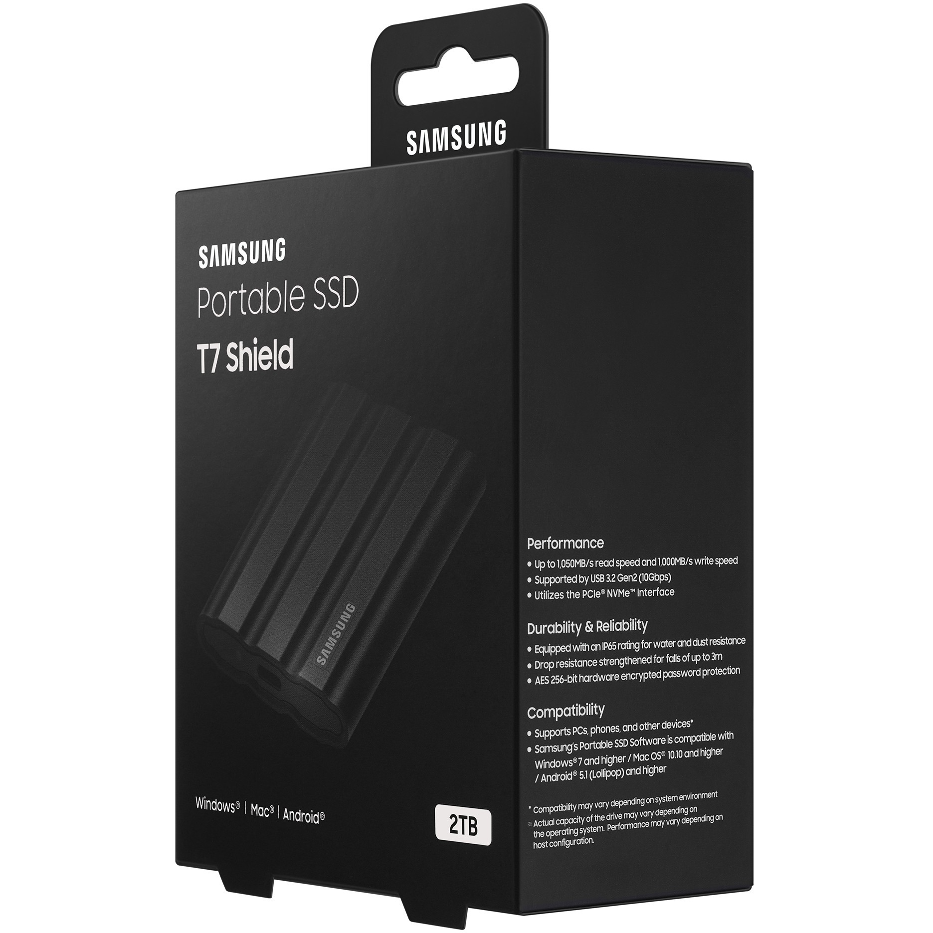 Samsung Portable SSD T7 Shield - MU-PE2T0S - 2TB, USB-C (USB 3.2 Gen2), 1050MB/s, Black, Rugged