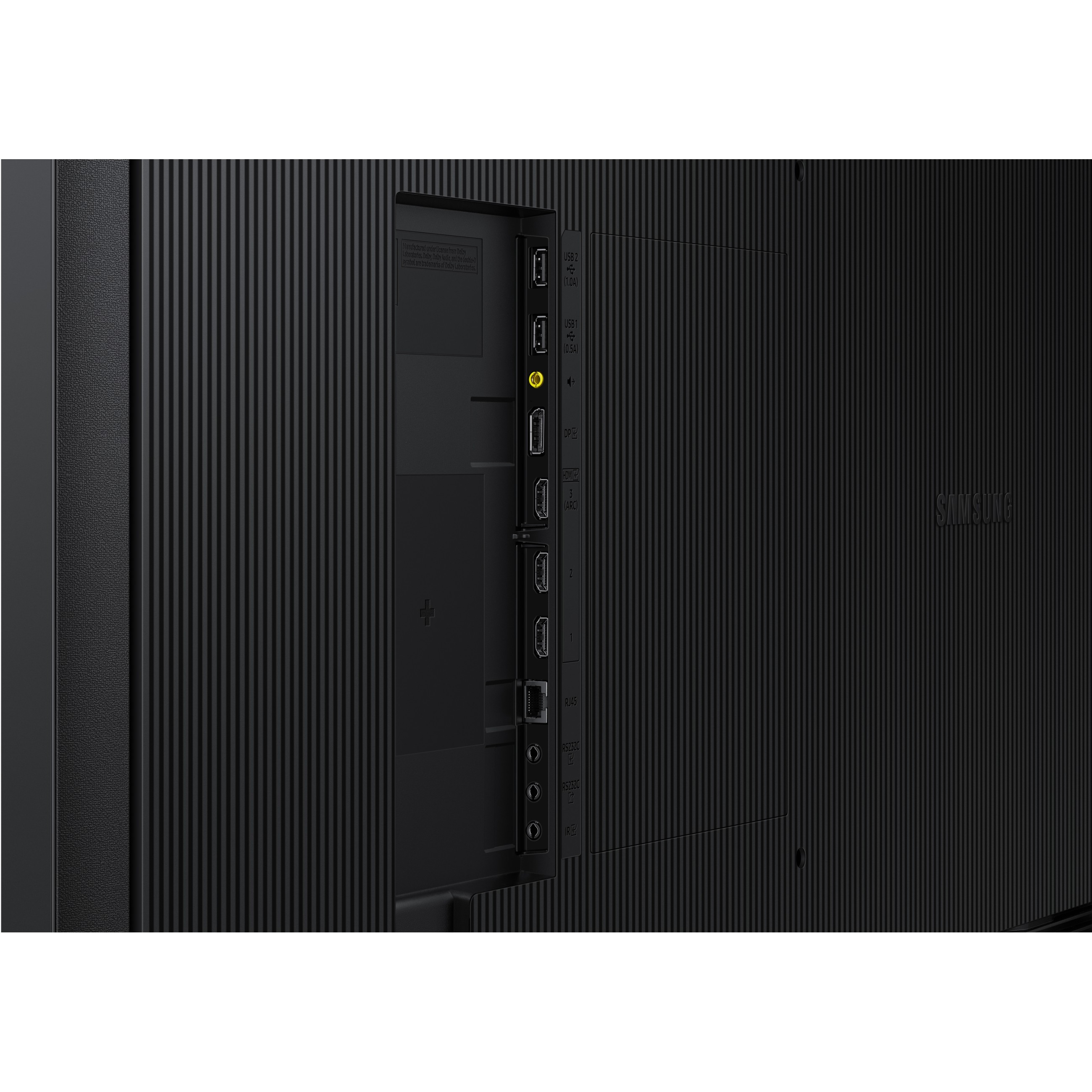 43" Samsung QM43C IPS LCD 4K signage, 3840x2160, 500 cd/m², 24/7 operation, HDMI/DP/USB, Bluetooth, Wi‑Fi, LAN, wall-mount ready