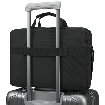 Slim Lenovo ThinkPad Essential 16-inch Topload (Eco) bag in black polyester with front pocket; fits up to 40.6 cm (16") laptops. Lightweight and compact for daily carry.