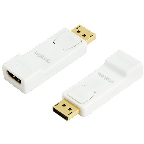 LogiLink DisplayPort to HDMI Adapter - CV0057 - White/Yellow, Locking DP Male to HDMI Female