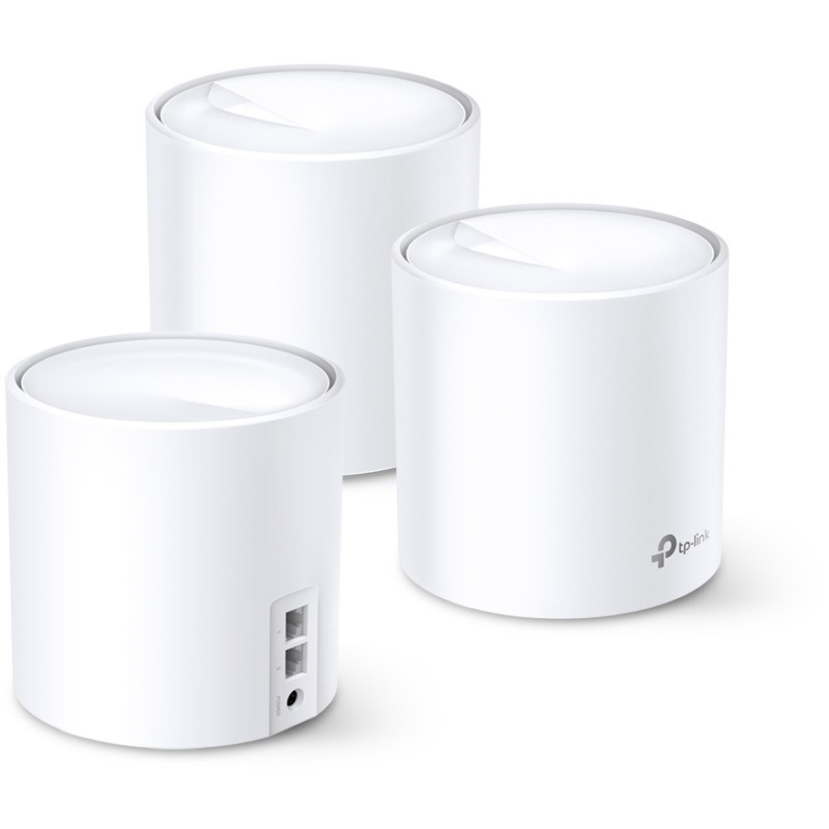 TP-Link Deco X20 AX1800 3-pack mesh Wi-Fi 6 system with app management, dual-band 2.4/5 GHz, proprietary mesh.