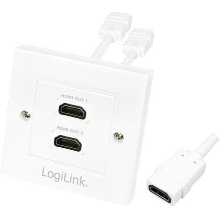 Logilink HDMI Adapter - Wall Socket, 2-Port - Color: White