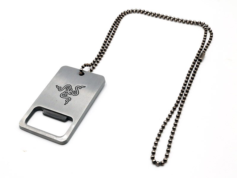Το τέλειο δώρο - ένα στυλιζαρισμένο ανοιχτήρι μπουκαλιών, με μεταλλική αλυσίδα. Το ανοιχτήρι έχει σχήμα dog tag και χάραξη με το σήμα της Razer. Το απαραίτητο αξεσουάρ για κάθε gamer.