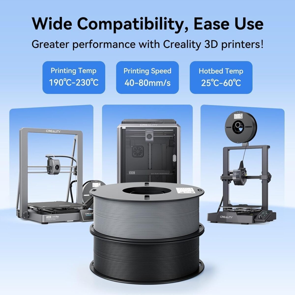 Πρώτες ύλες υψηλής καθαρότητας, η καλή ρευστότητα επιτρέπει την ομοιόμορφη και ομαλή εξώθηση του νήματος κατά την εκτύπωση. Δεν αποφράσσεται το ακροφύσιο και βελτιώνεται το ποσοστό επιτυχίας της εκτύπωσης.