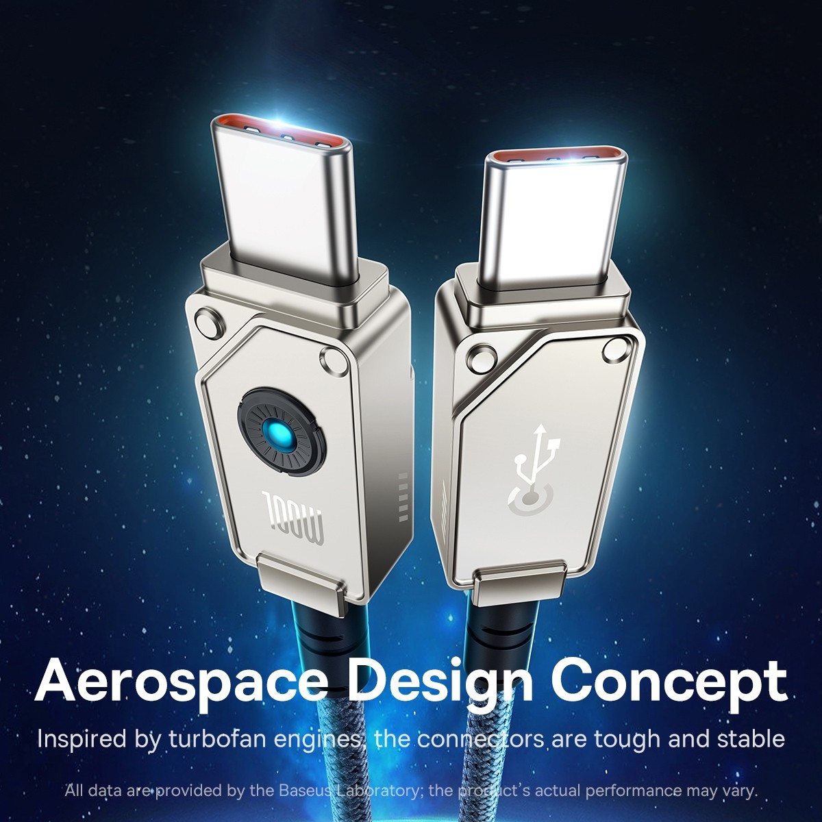 Aramid fiber braided USB-C to USB-C cable with 100W PD fast charging and E-marker smart chip for smart charging recognition.