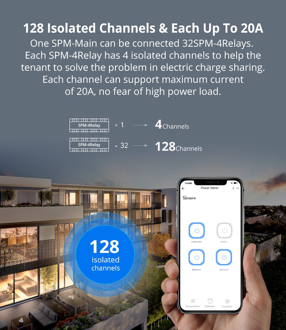 - Connect up to 32 SPM-4Relays.One SPM-Main can be connected 32 SPM-4Relays. Each SPM-4Relay has 4 isolated channels to help you manage devices more conveniently