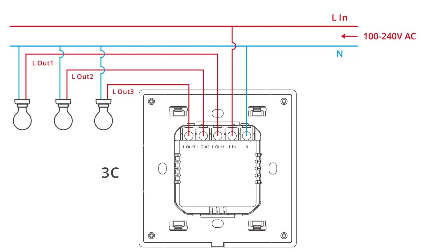 - 86/EU Type Input : 3Gang: 100-240V~50/60 Hz Max 15A