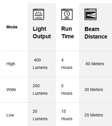 - 7 light modes: High, Low, Wide, Wide Low, Red, Flashing Red, Green