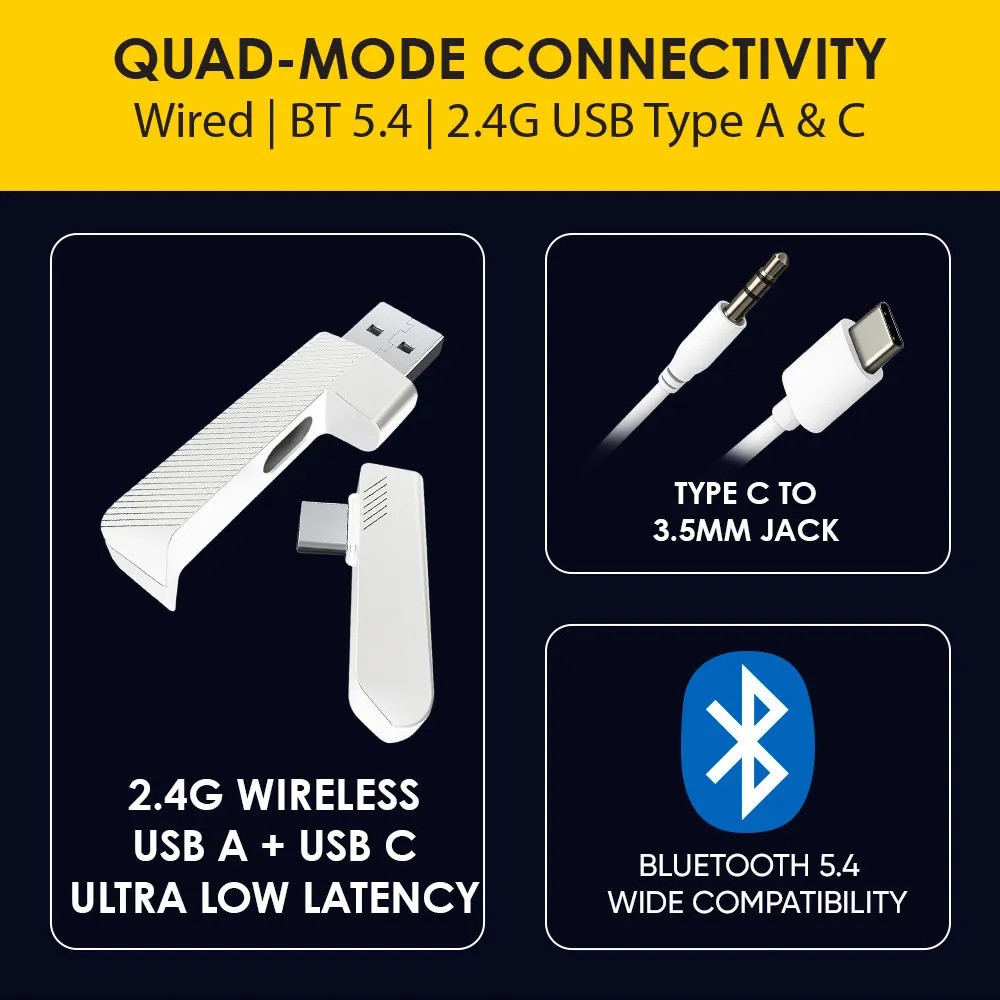 Armaggeddon Gaming Headset USB+3.5mm+2.4G+BT PU Leather - COSMIC-V - Ultraclear White
