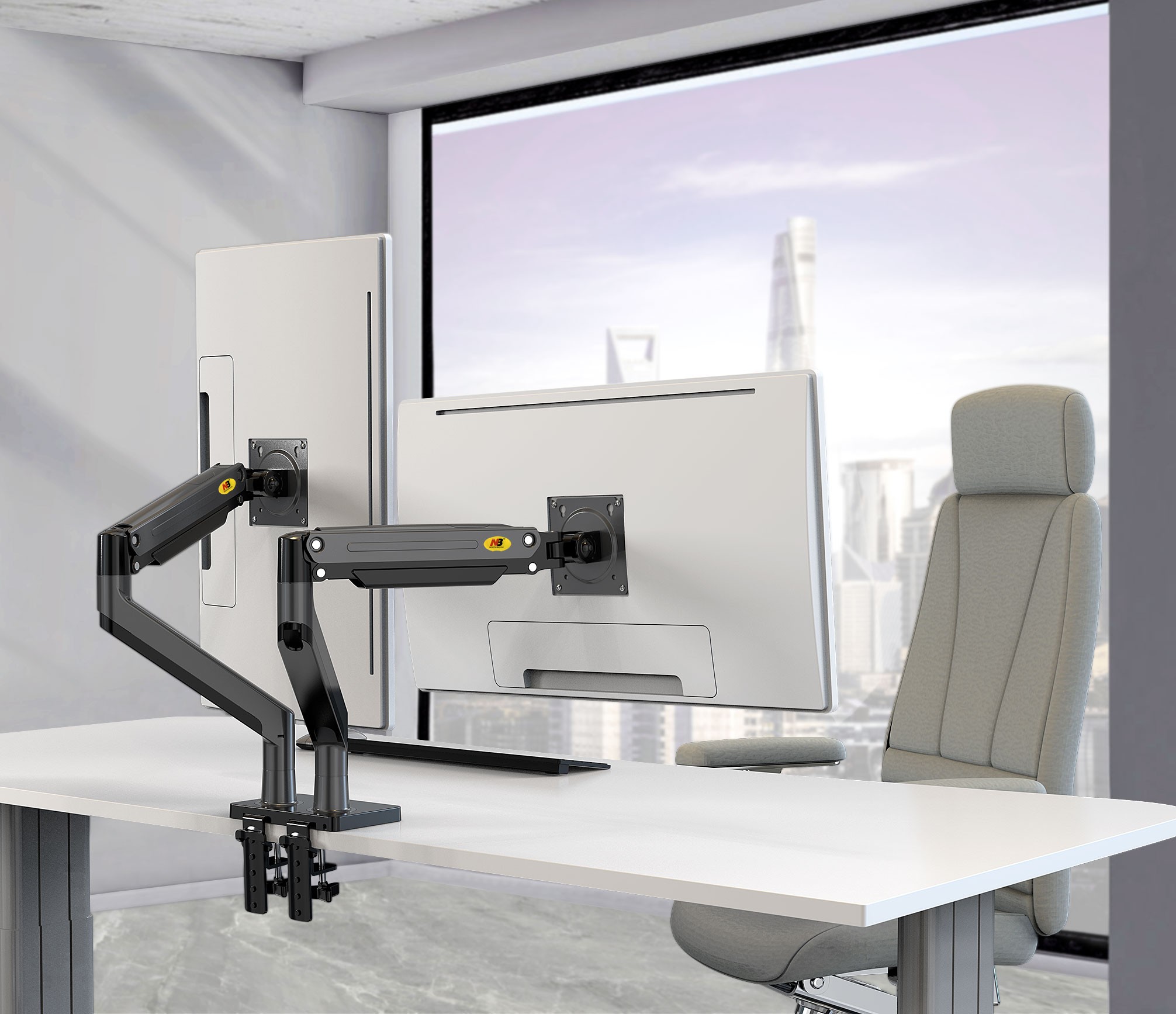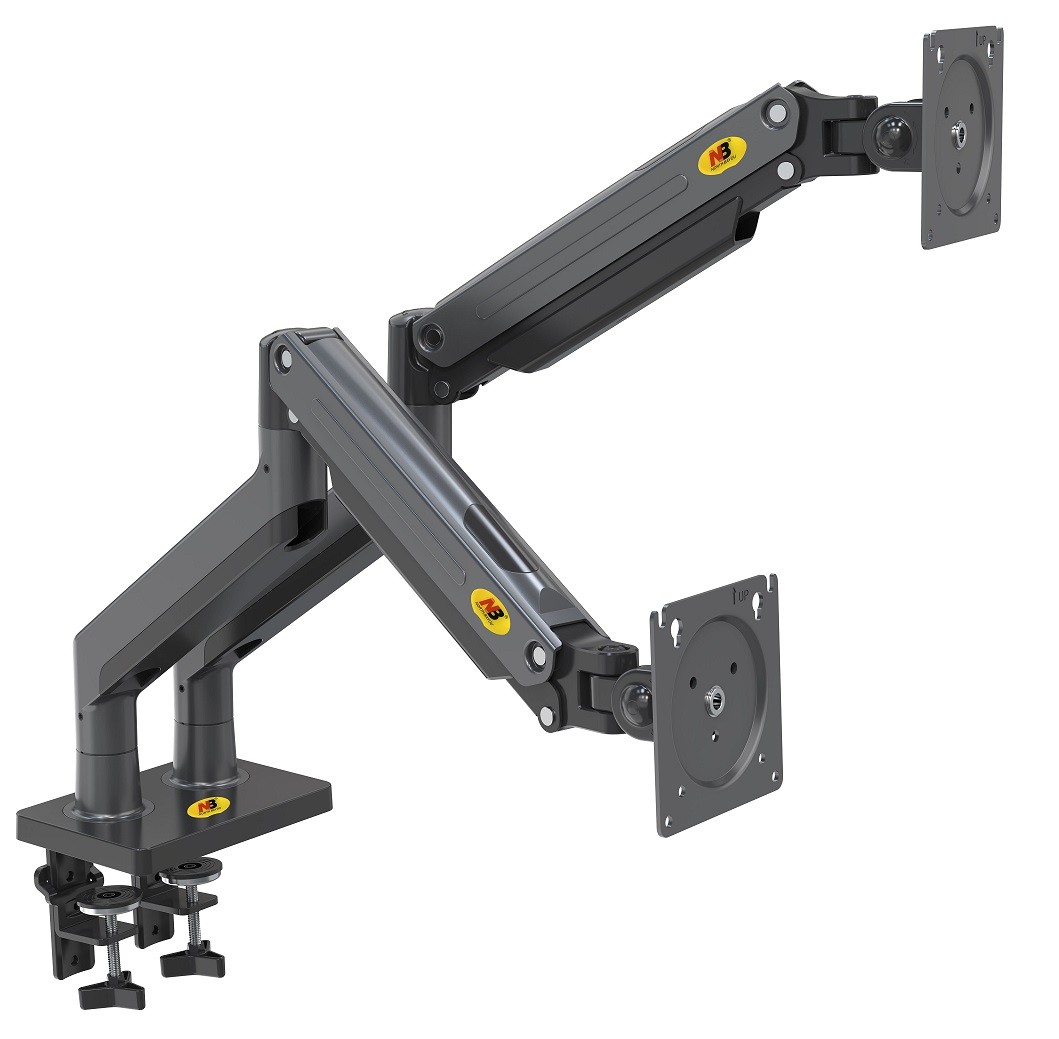 NBMounts Monitor Desk Mount - G35 - Dual Arm Extra Long Gas Monitor Desk Mount