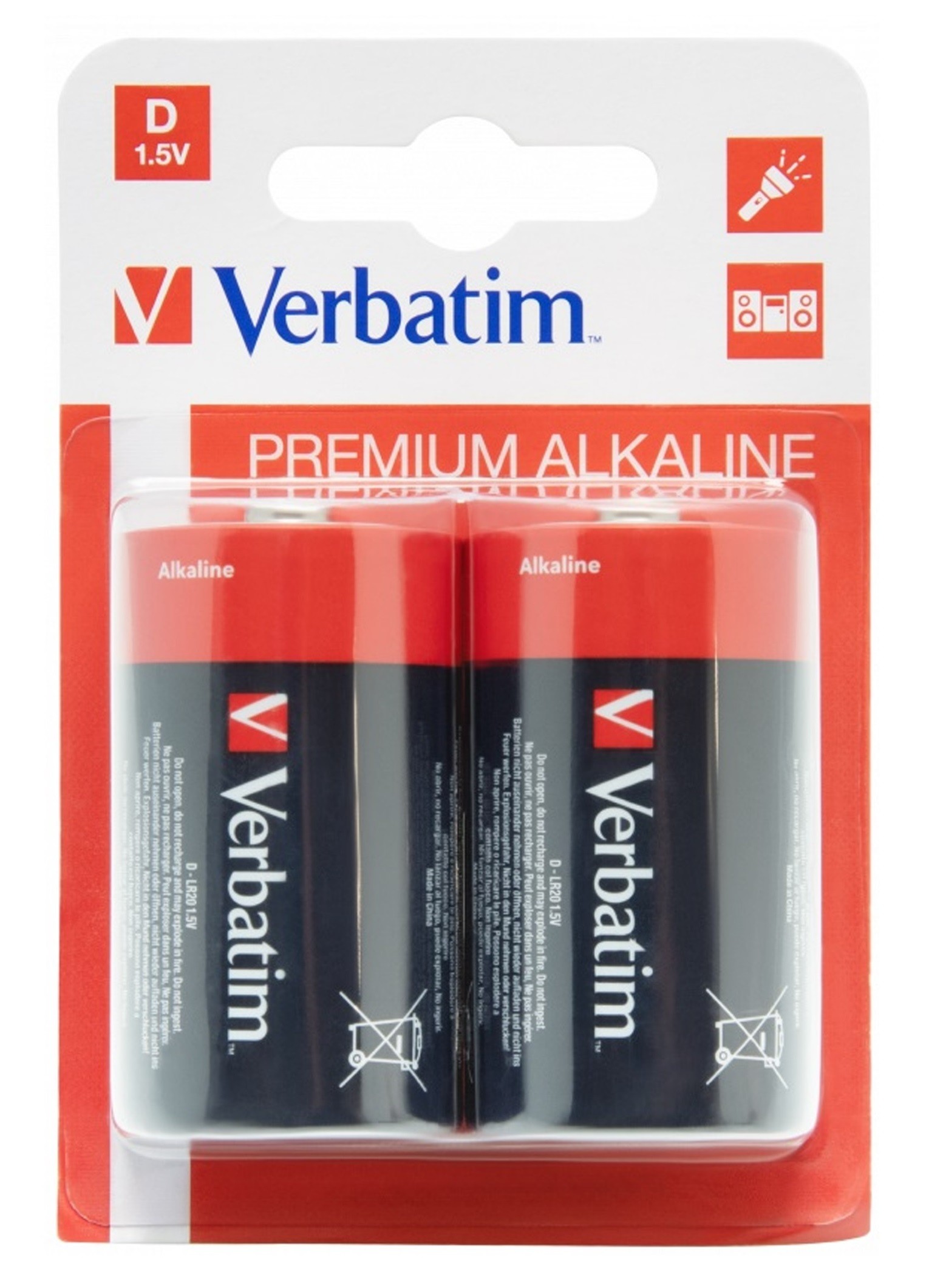 Verbatim Alkaline Batteries - D, 2pcs