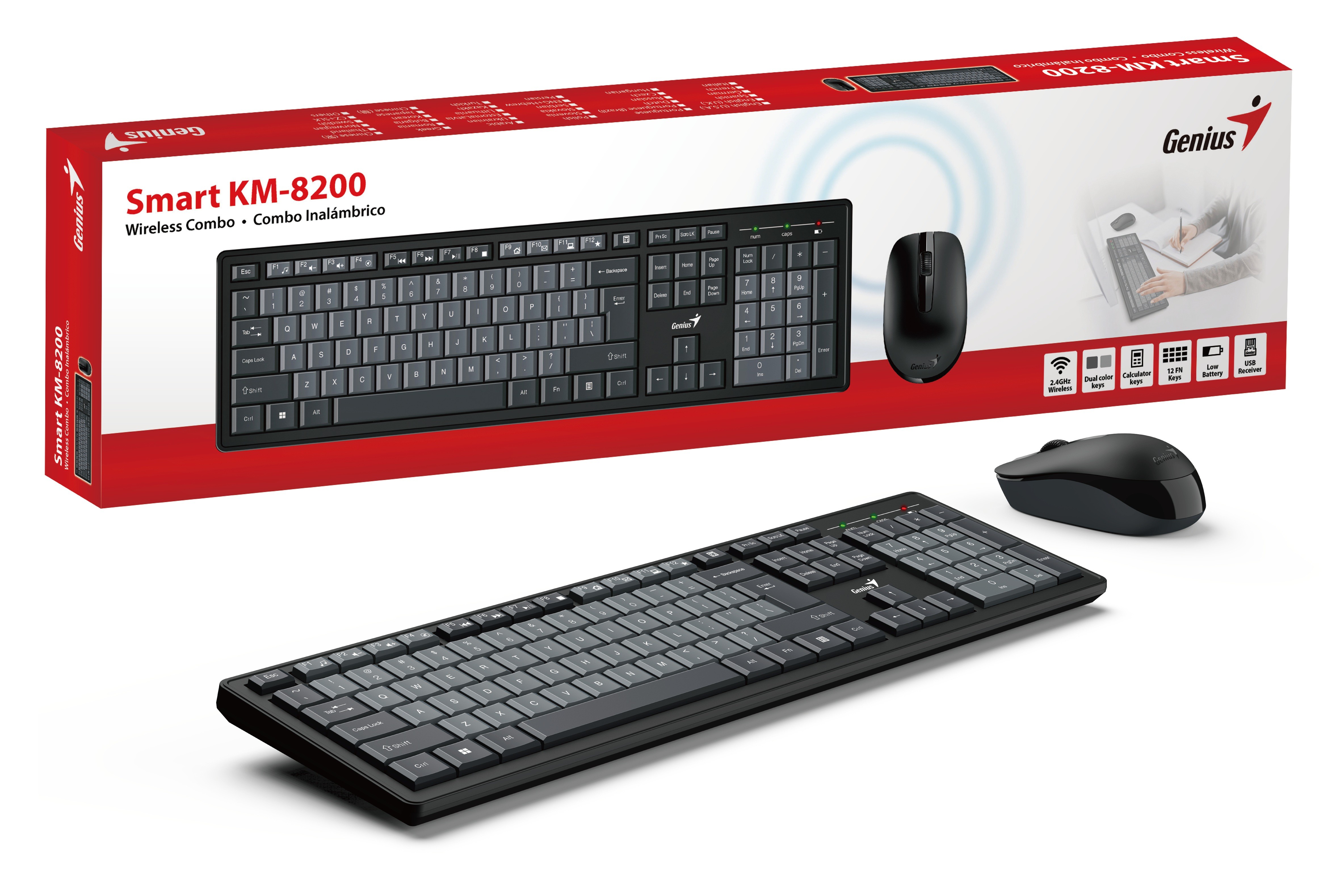 Genius Keyboard-Mouse Set - KM-8200 - Wireless Dual Colour English