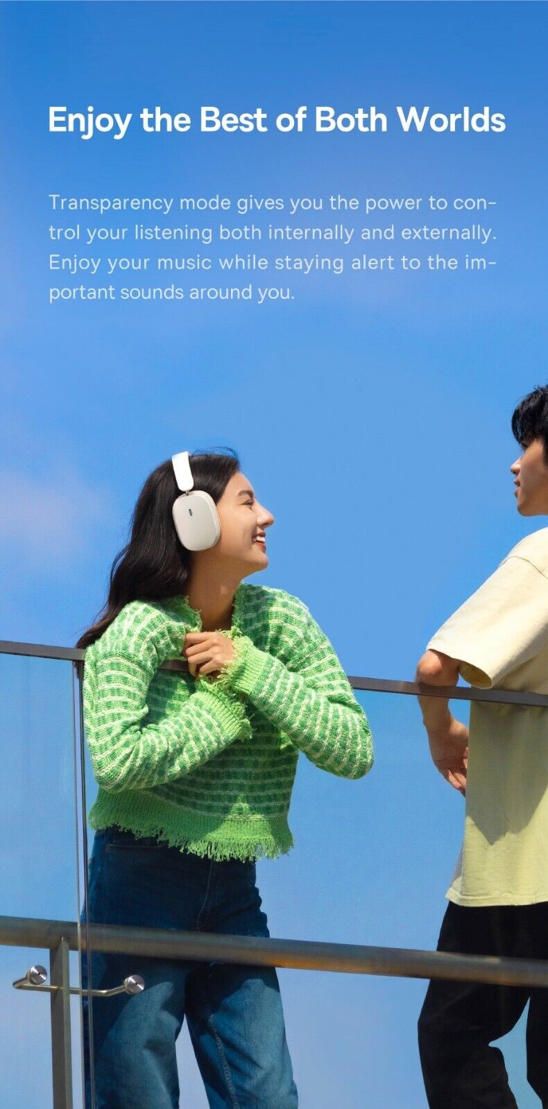 - Enjoy the Best of Both Worlds Transparency mode gives you the power to control your listening both internally and externally. Enjoy your music while staying alert to the important sounds around you.