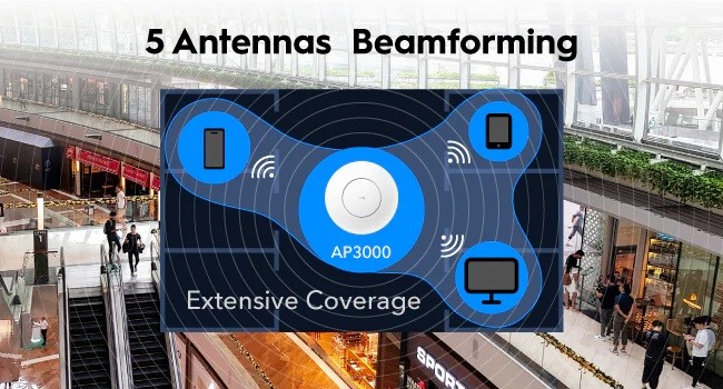 A wall/ceiling mounted WiFi 6 AP with large RAM and shielded 2.5G ports, designed for connecting transportation hubs, hotels, offices, lecture halls and classrooms.