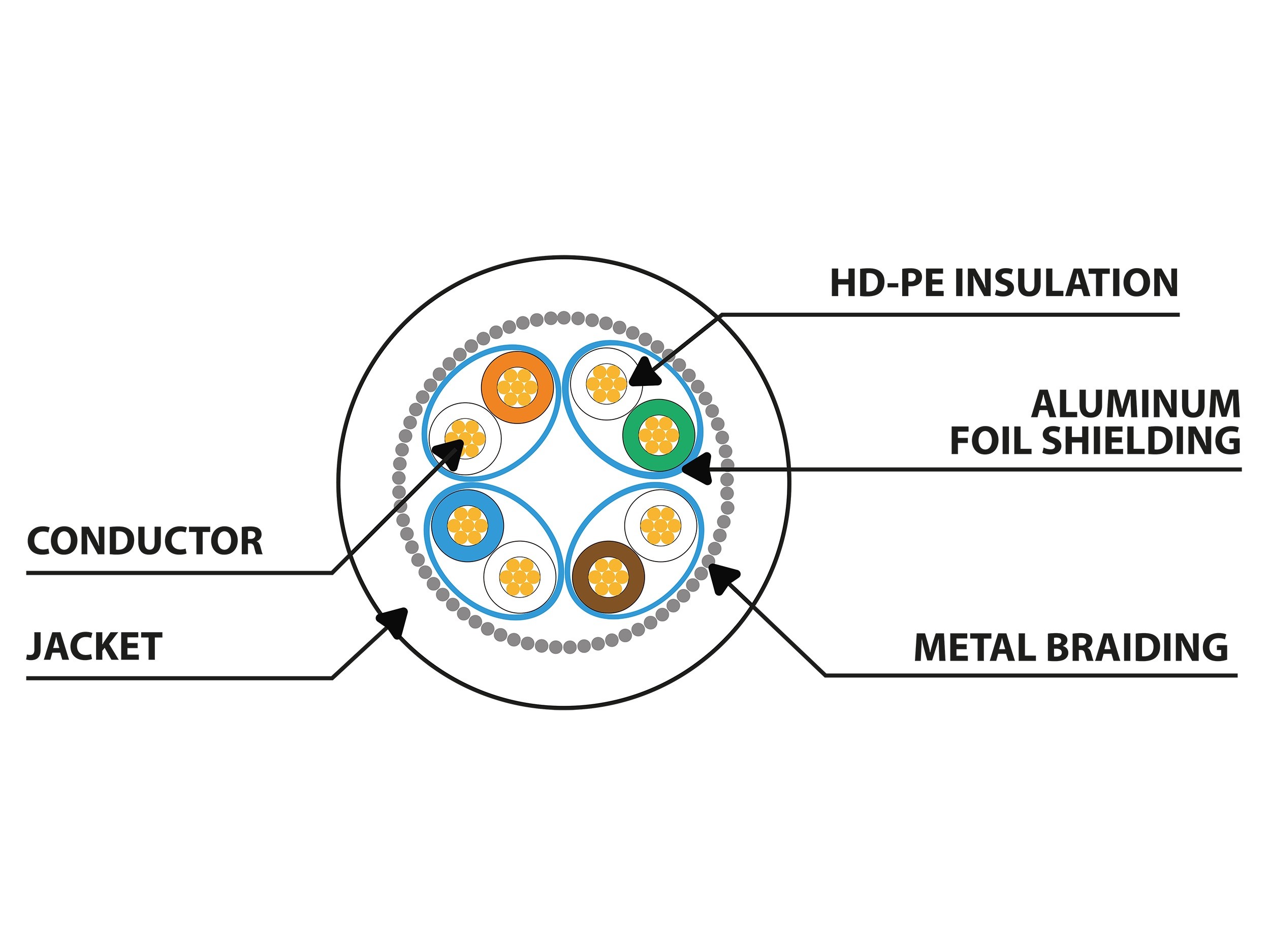 - Shielding type: S/FTP (Braid + each pair foiled)