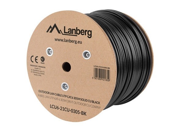 Lanberg CAT6 UTP CU Cable Outdoor 305m Black - LCU6-21CU-0305-BK - Cat6 UTP CU Cable Outdoor 305m Black
