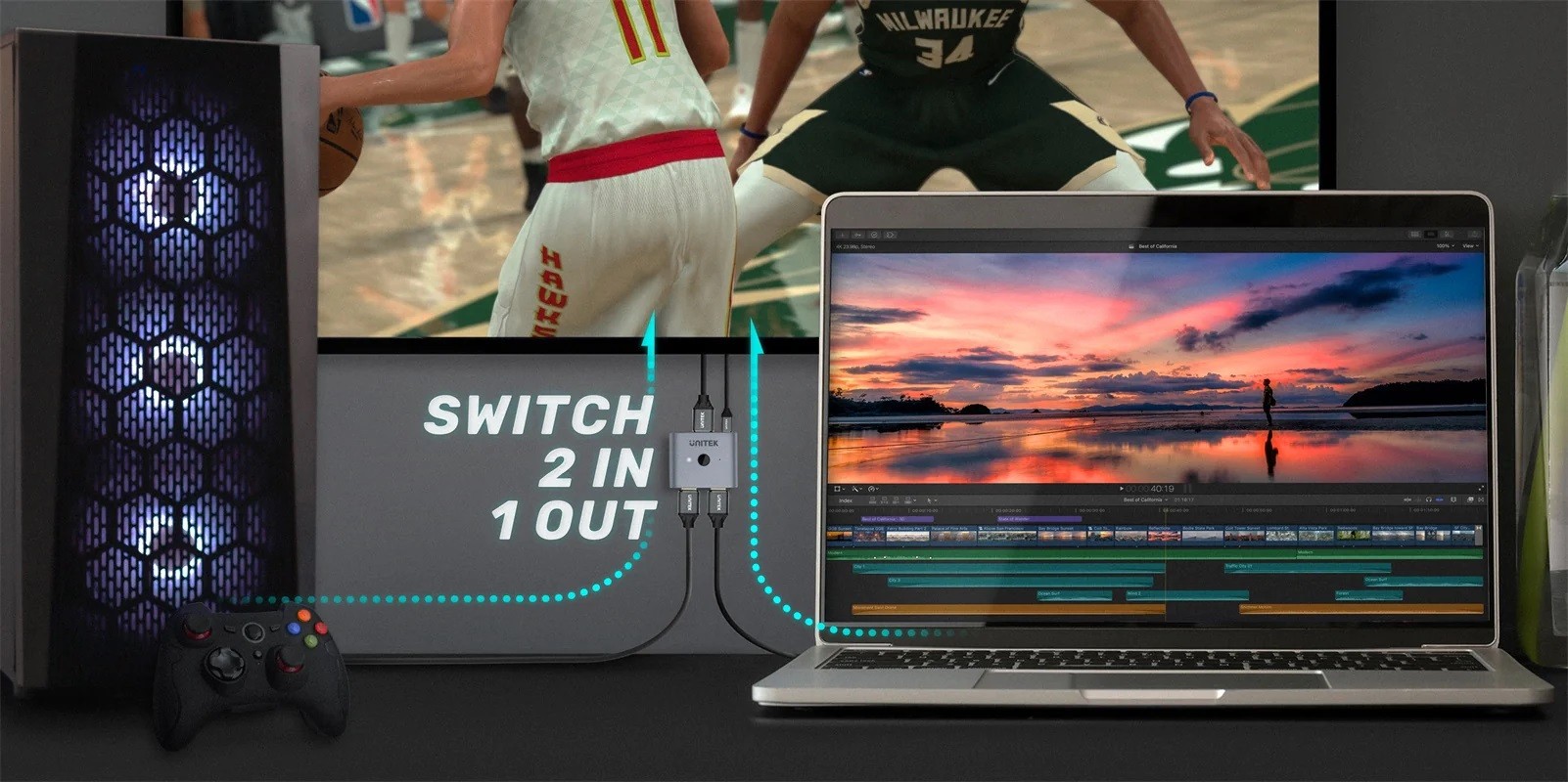This bidirectional switch offers 2 DP inputs for your devices to connect with 1 DP Display, also works the other way around as a splitter.
