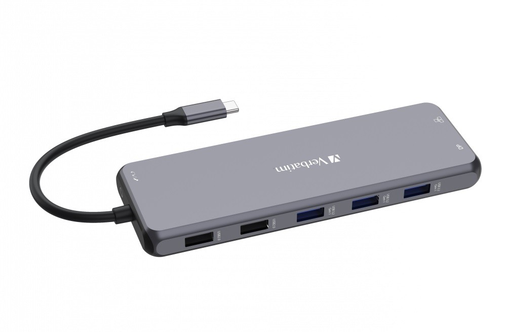 Verbatim USB-C 13-Port Hub with triple display support and 100W Power Delivery for versatile connectivity.