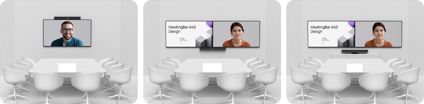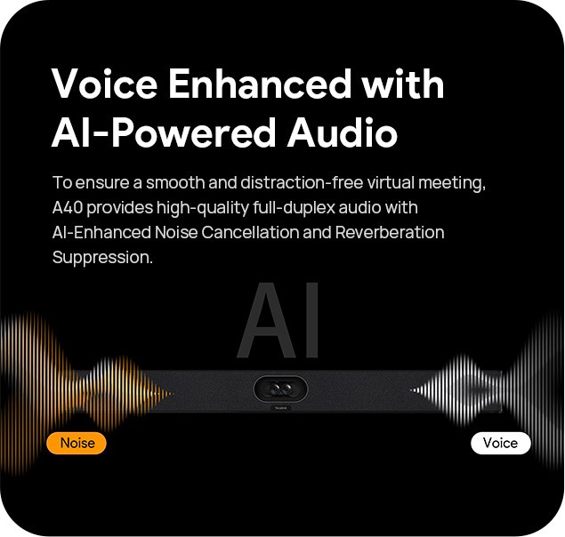Yealink MeetingBar A40, an all-in-one video collaboration bar for premium small-to-medium rooms. It will combine the images from two 48MP lenses, presents a higher pixel picture, and delivers clearer image quality. It also features built-in 2 stereo speakers, 8x MEMS microphone array, and supports 2 additional expansion microphones*. The intelligent noise reduction technology provides a good audio experience. Yealink MeetingBar A40 allows for the upgrade to the latest Android operating system, Android 13, and will continue to receive future upgrades. It can ensure that users can enjoy the latest features and improvements as they become available. In addition, it is compatible with Microsoft's MDEP, which enhances security and deployment experiences. This integration provides users with a more secure environment and streamlined deployment processes, contributing to a smoother and safer user experience. Moreover, Yealink MeetingBar A40 features a direct connection to CTP25, enabling a simplified login process.This streamlined login experience saves time and improves convenience for users.