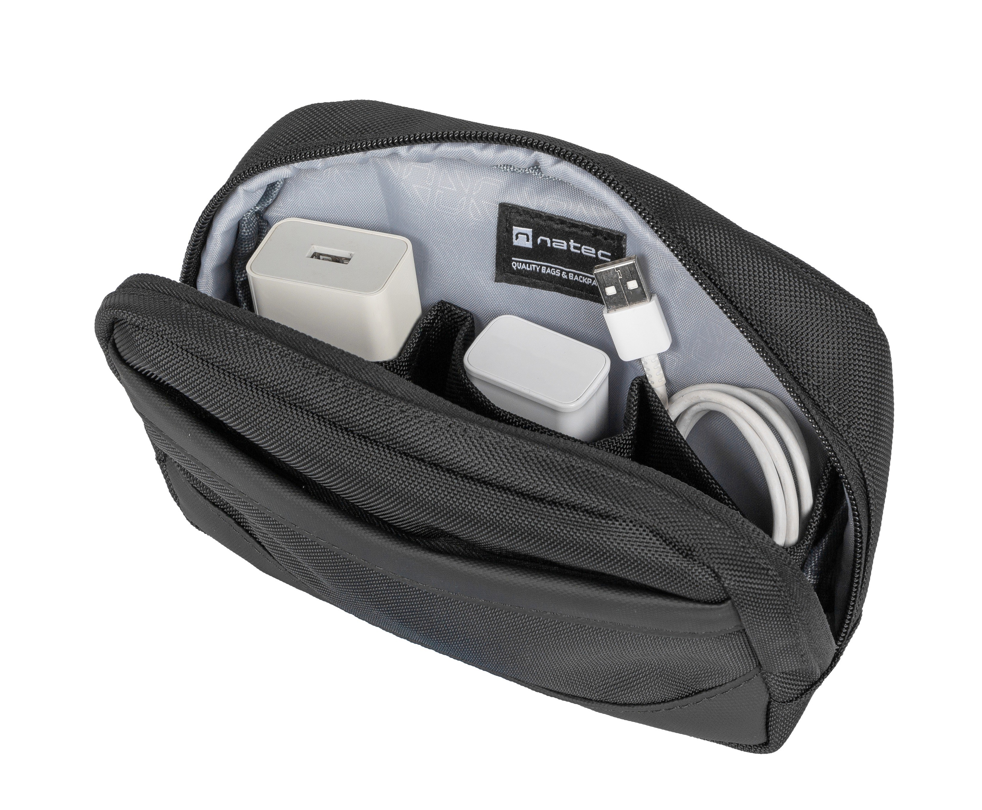 - Including an universal spacious organizer for cables, adapters and cosmetics.