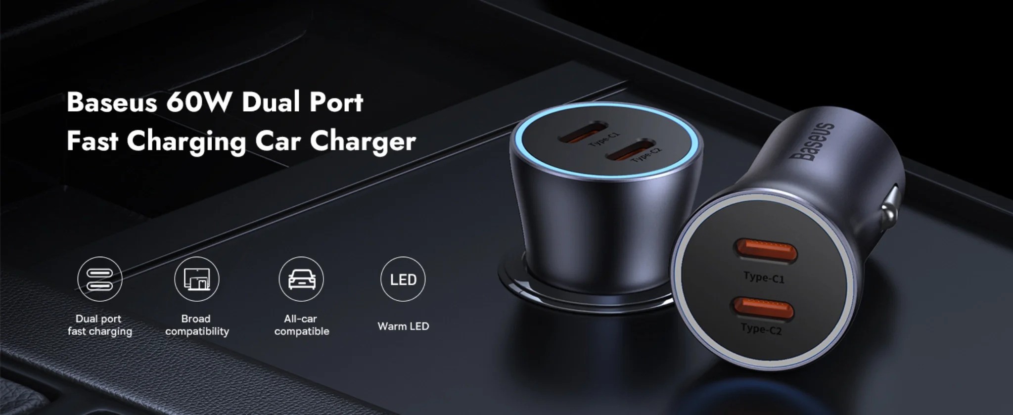 - Dual Type-C 60W Car Charger is compatible with all 12V and 24V cars and offers PD 30W Fast Charging and simultaneous fast charging for iPhones and iPad.