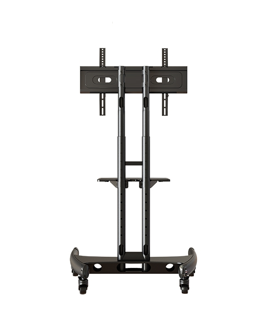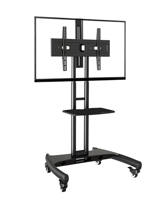 Mobile trolley stand for LED/LCD displays up to 65 inches with manual height, ideal for meeting rooms, exhibitions, and hospitality settings.