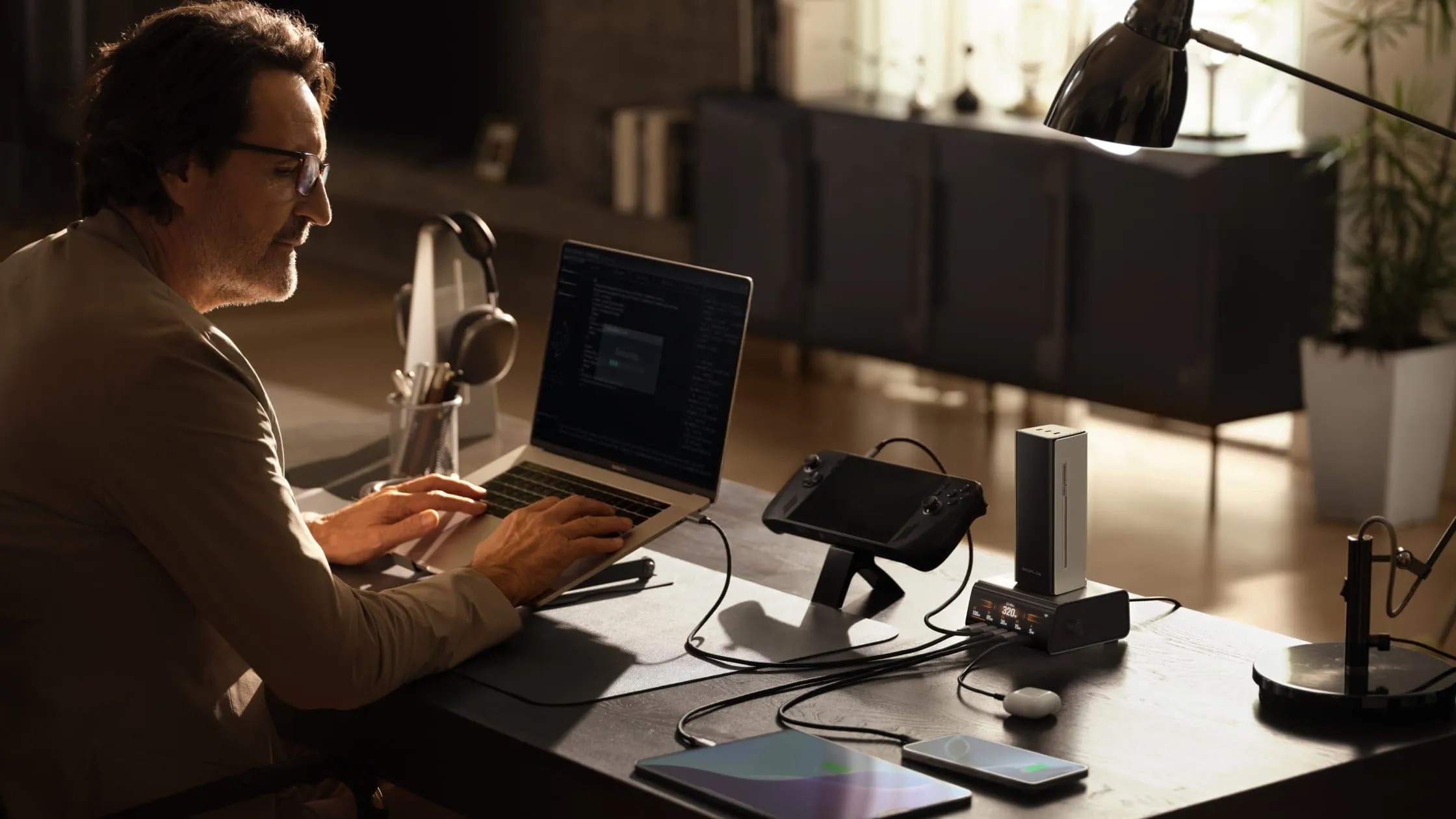 6-in-1 desktop charger, 320 W total output; charges up to 6 devices including RAPID Pro Powerbanks; 80% in 20 minutes for RAPID Pro 27k power bank.