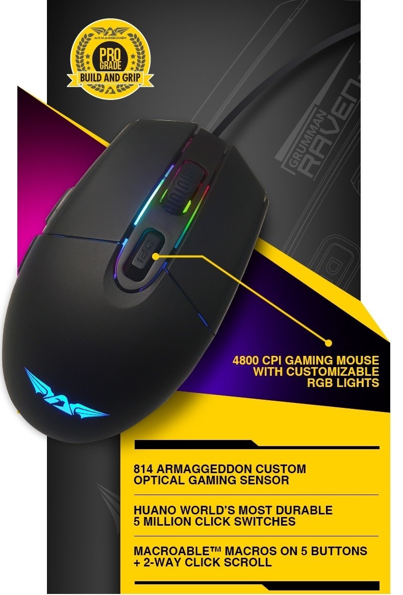Armaggeddon Raven 3 Pro-Gaming Mouse with Free Mousepad: 4800CPI optical sensor, Huano switches, 5 macro-able buttons, on-the-fly CPI adjustment, RGB lights.