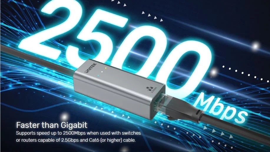 - Faster than Gigabit - Supports speed up to 2500Mbps when used with switches or routers capable of 2.5Gbps and Cat6 (or higher) cable.