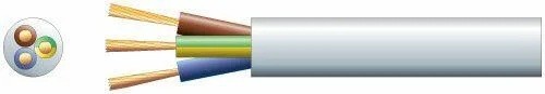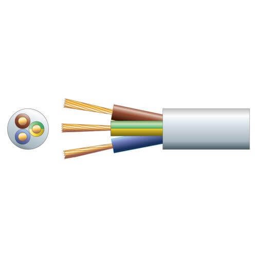 Round-profile mains cable with flexible PVC sheath; 3-core, 10A, 1.0mm, 100m, White; BSI BS6500 and VDE approved.