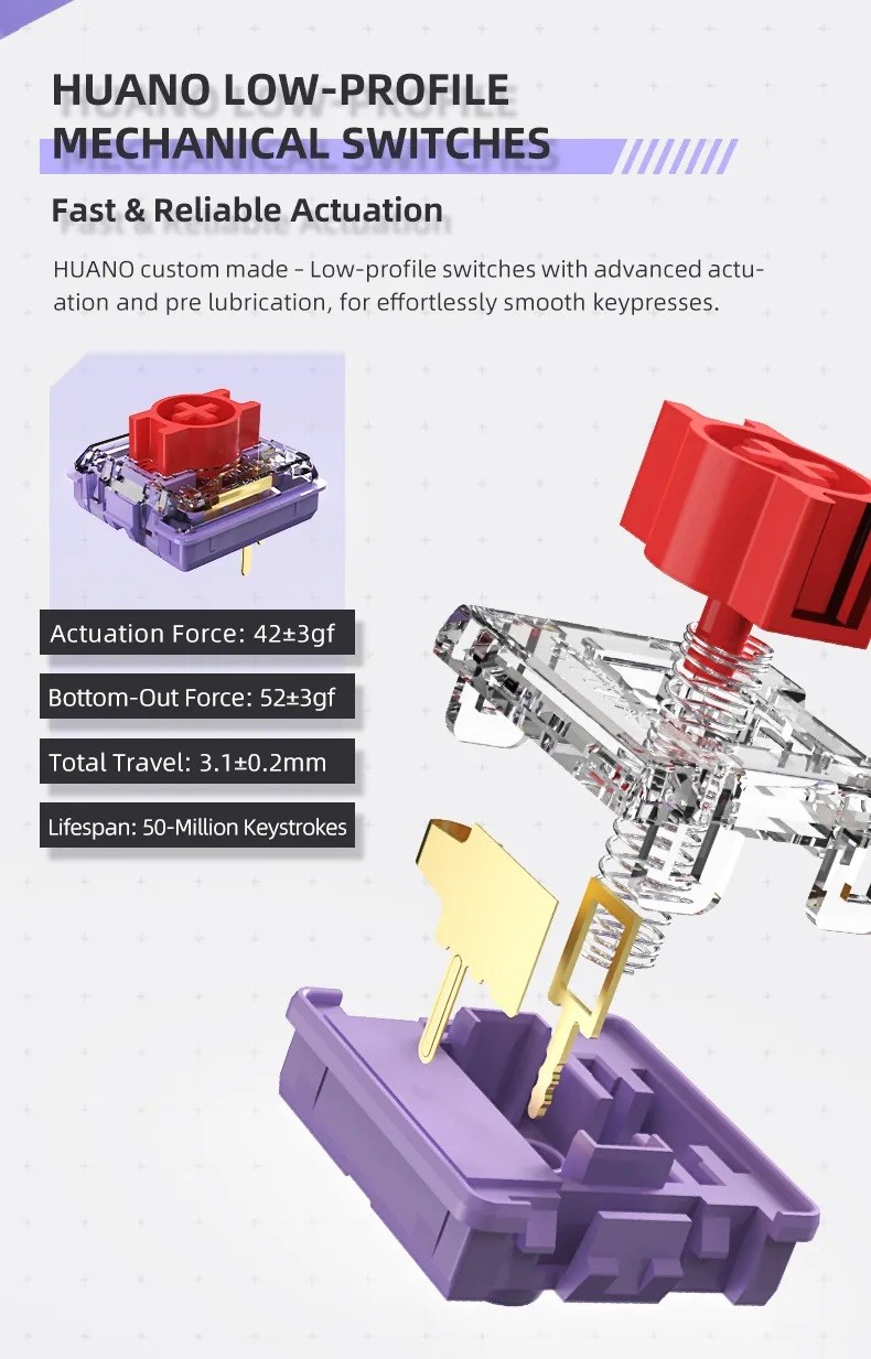 - Slim, Sleek, Lightweight: ThundeRobot K96 is a slim and sleek low-profile mechanical keyboard. Low-profile keyboards are a bliss to use on an everyday basis. They have quick trigger speed with short key travel, they look sleek with thing chassis and short height keycaps and switches.