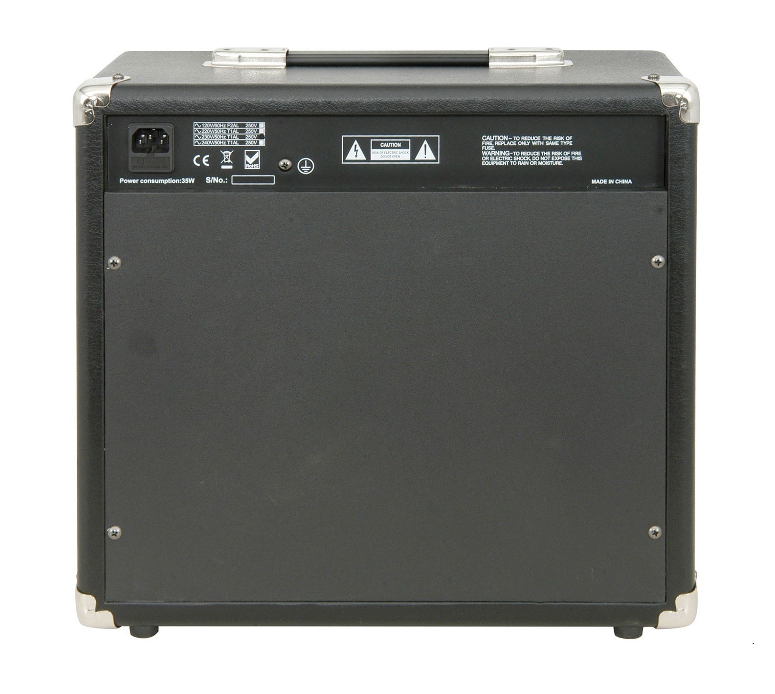 Classically styled guitar combo in a vinyl covered cabinet with metal corner protectors and basket-weave style grille cloth. Front control panel is recessed with retro "chicken-head" control knobs and additional features for Gain, EQ and outputs. Custom solid-state circuitry is voiced to produce authentic vintage-style clean and driven tones.