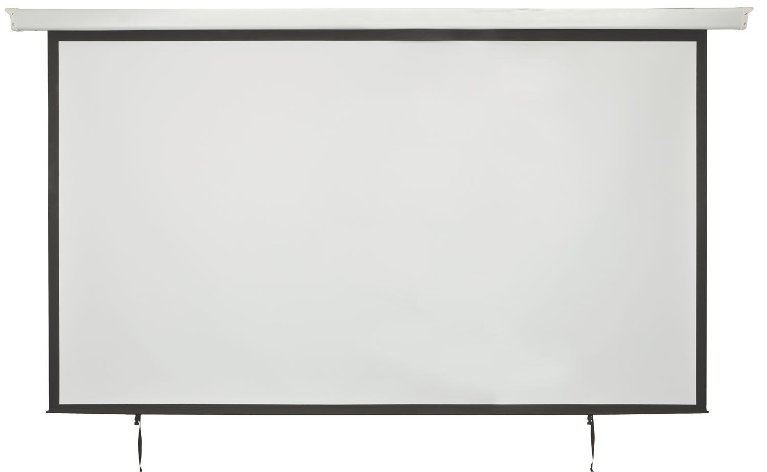 Large format projector screen with built-in electric motor controlled via the in-line switch or remote control. The screen is housed in a white steel case with mounting brackets on either end, allowing installation onto ceilings or walls. The screen itself has a weighted bottom bar to prevent the screen jamming in the case or curling. Available for all types of installation such as classrooms, auditoriums or places of worship.