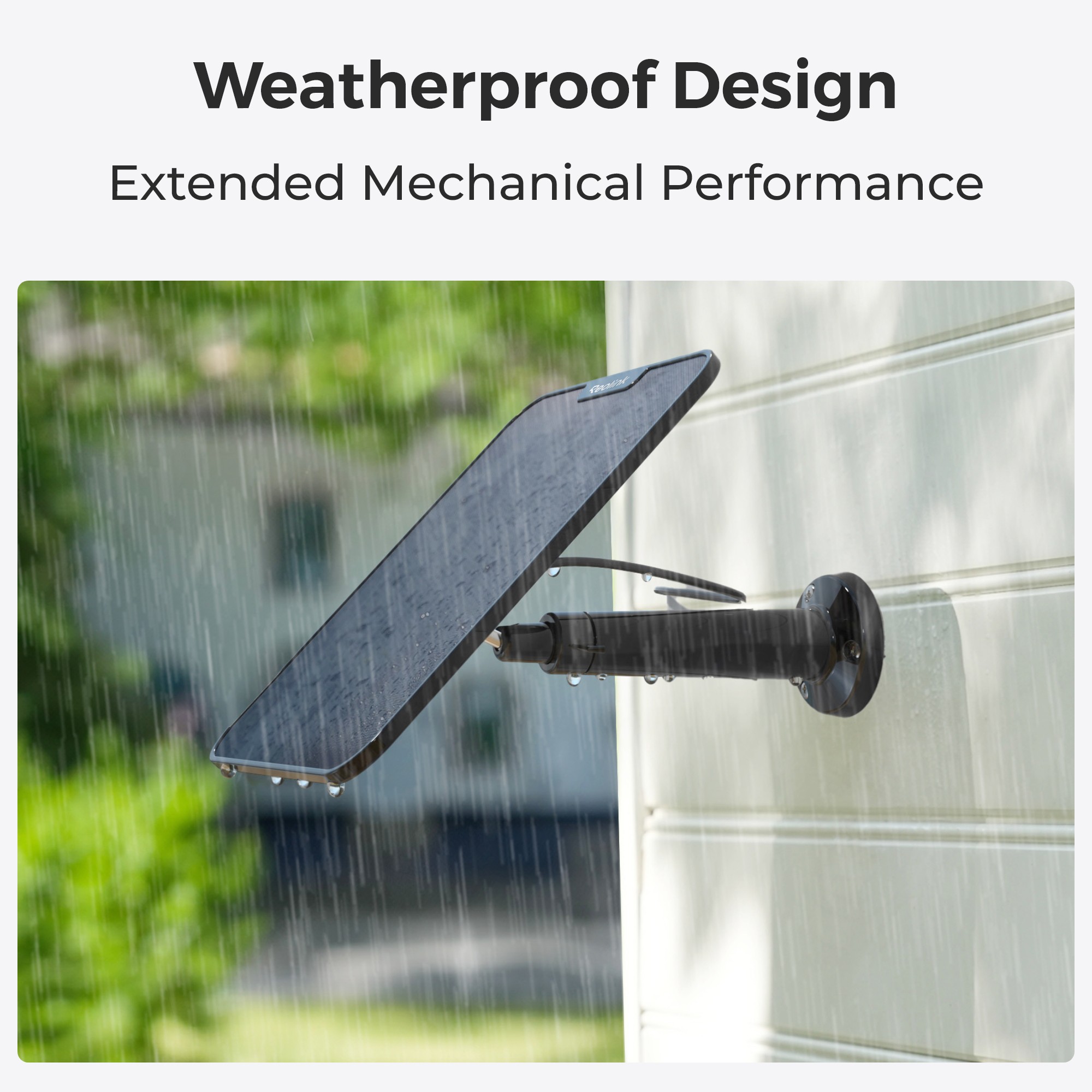 Power your Reolink battery camera with this 6W solar panel (4m cable included) and 360° wall mount for easy, weather-resistant positioning.