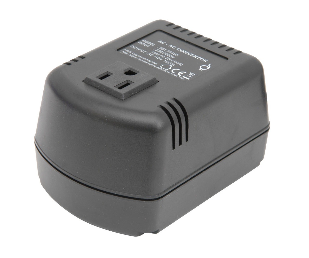 A converter that enables a 110 - 120Vac device from the USA to be powered from a 230-240Vac UK mains outlet.