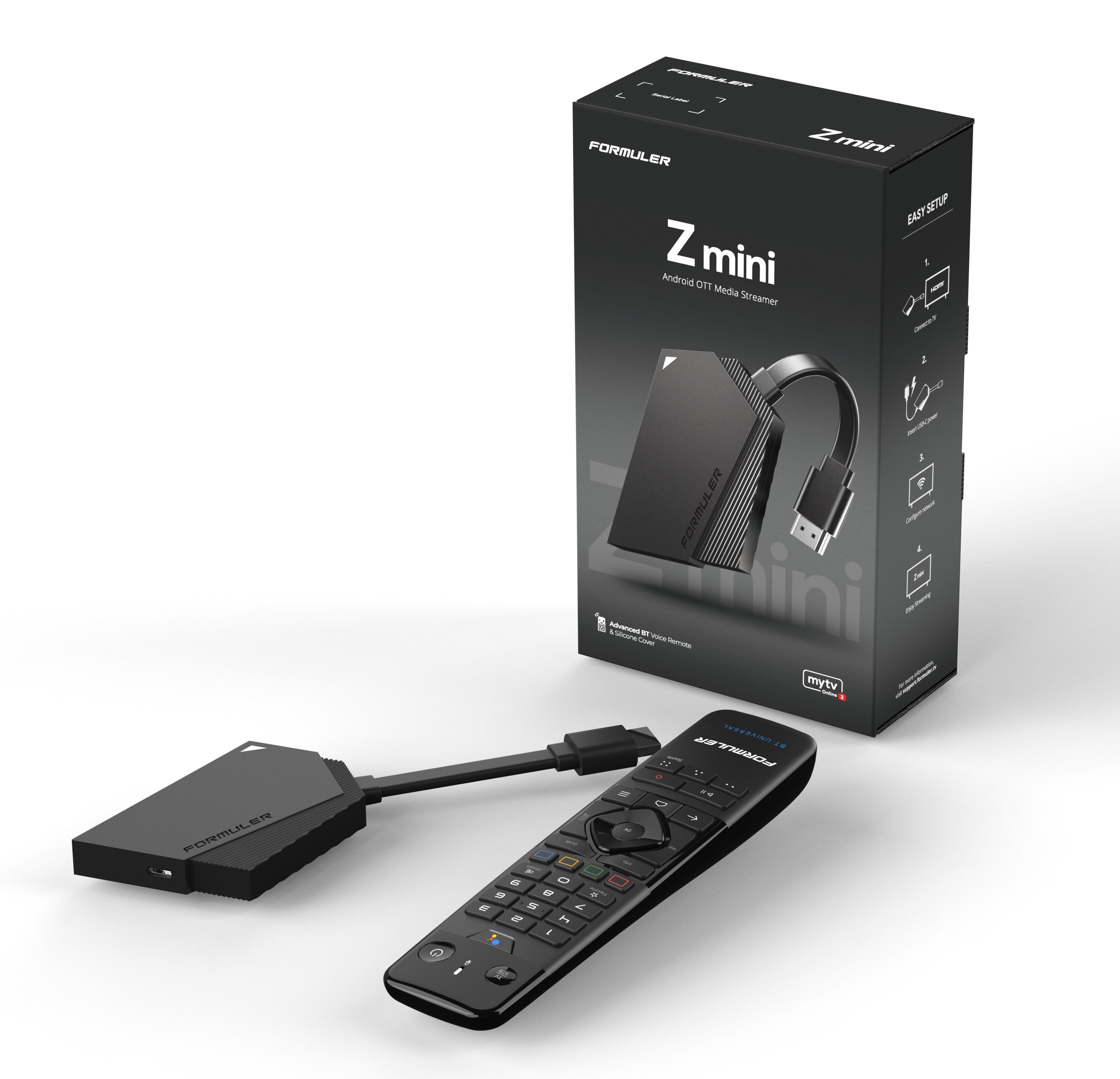 Z mini is easy to install and use, it connects to any TV in a snap. With its sleek design, you can hide it behind your TV for a clutter-free look. Effortlessly control Z mini using the included advanced BT remote control.