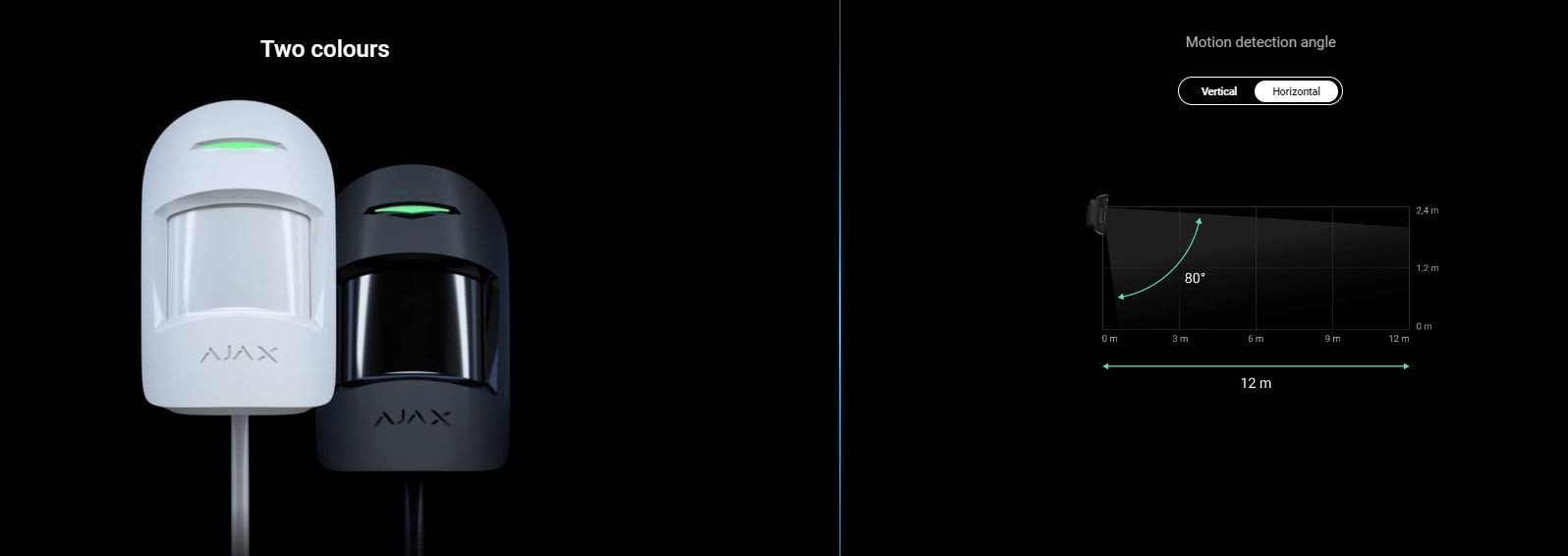 - Motion detection angles : horizontal — 88.5° / vertical — 80°