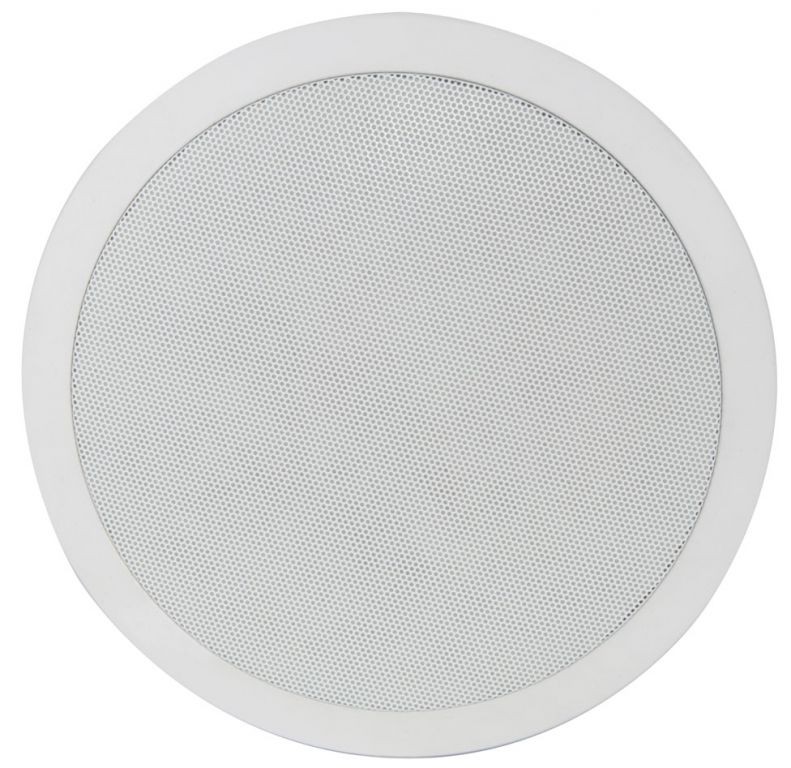 2-way quick fit ceiling speakers with bass driver and directional dome tweeter giving an excellent frequency response, all housed in a white polymer frame with metal grille.
