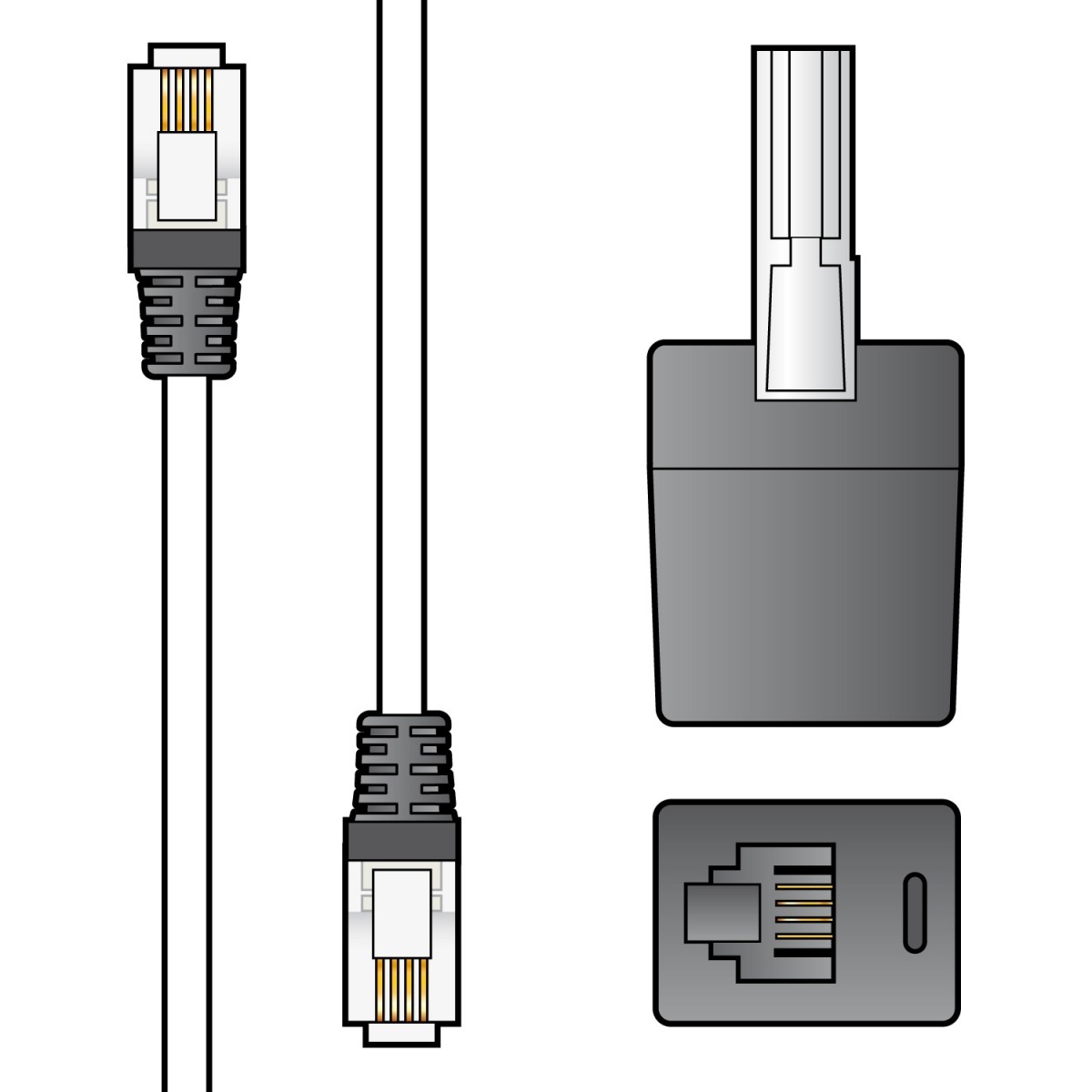 High quality RJ11 6P4C plug to plug leads supplied with UK BT431A telephone adaptor.