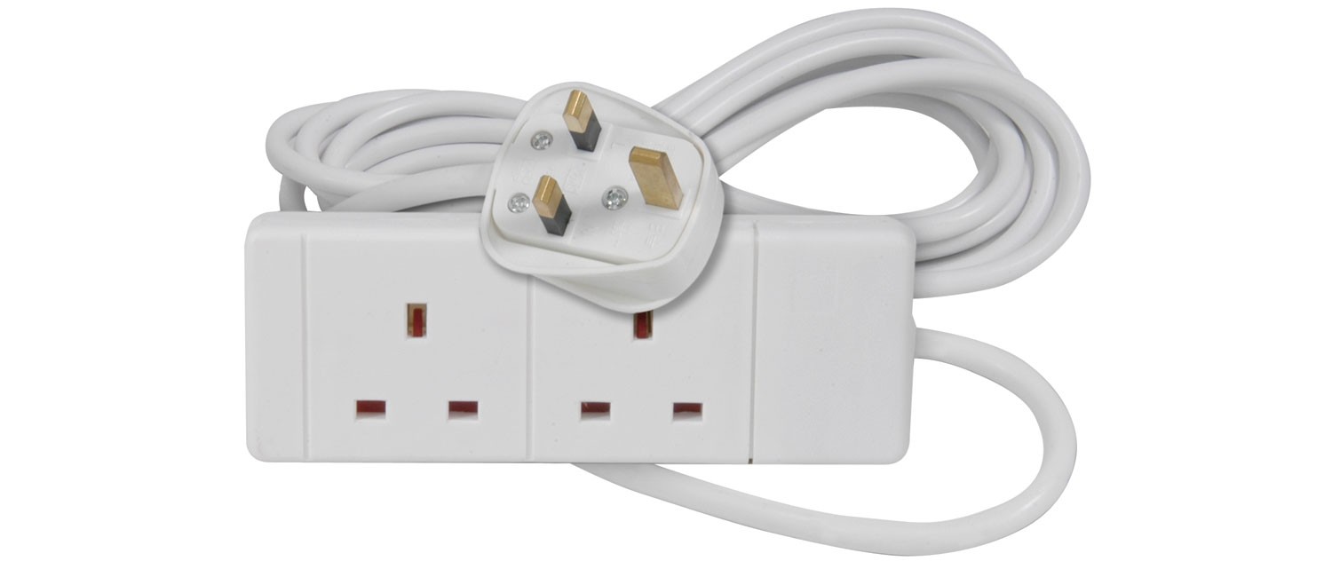 2-gang extension lead, 5.0 m, non-rewireable, BS1363/A compliant, rated at 13 A.
