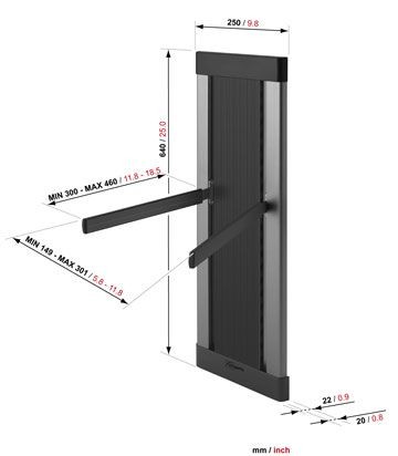 SuperFlat: only 20 mm from wall; Cable Inlay System (CIS) hides up to 10 cables; 1 AV support included with adjustable height, width and depth; Up to 2 AV supports total.