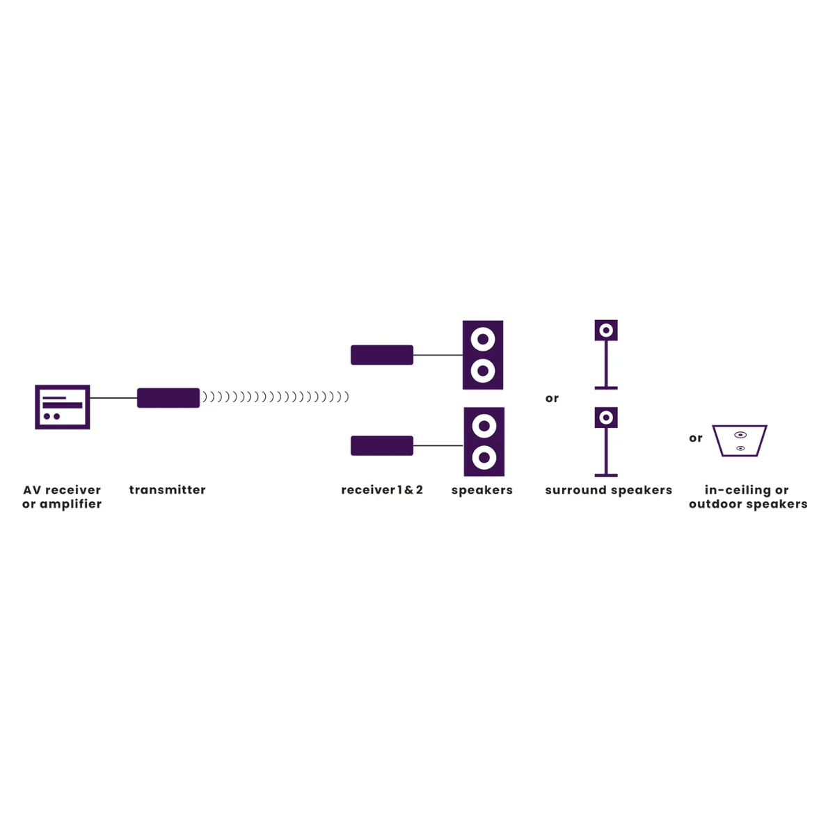 Anywhere 750 enables a fully wireless home cinema and audio setup; connect surround or ceiling speakers without cables.
