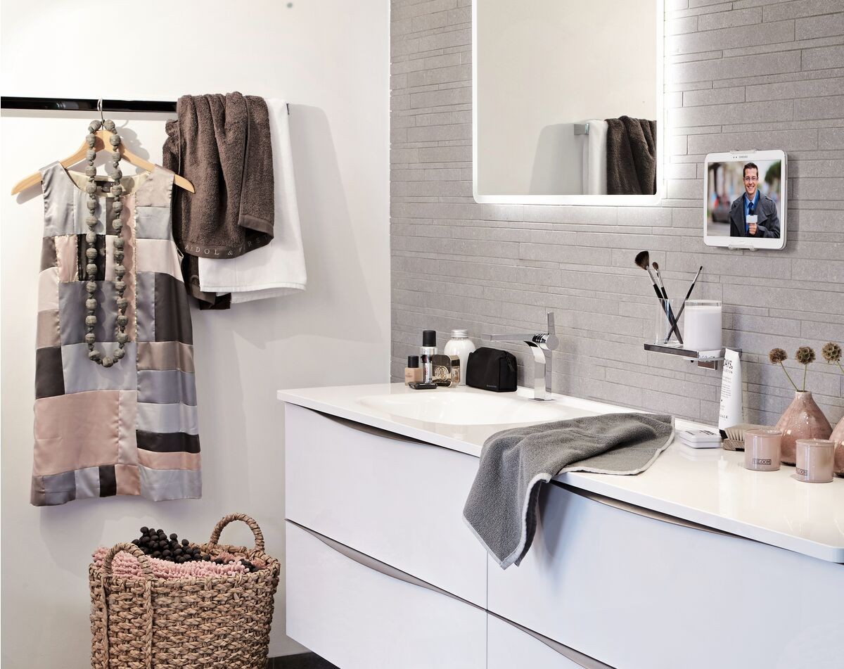 At Vogel's, we find that listening to music or watching TV on a tablet is the perfect way to relax in the bath. However, you don't want to take the risk of dropping it in the water. That's why our designers drew upon their experience to come up with an ideal way to attach a tablet securely to walls.