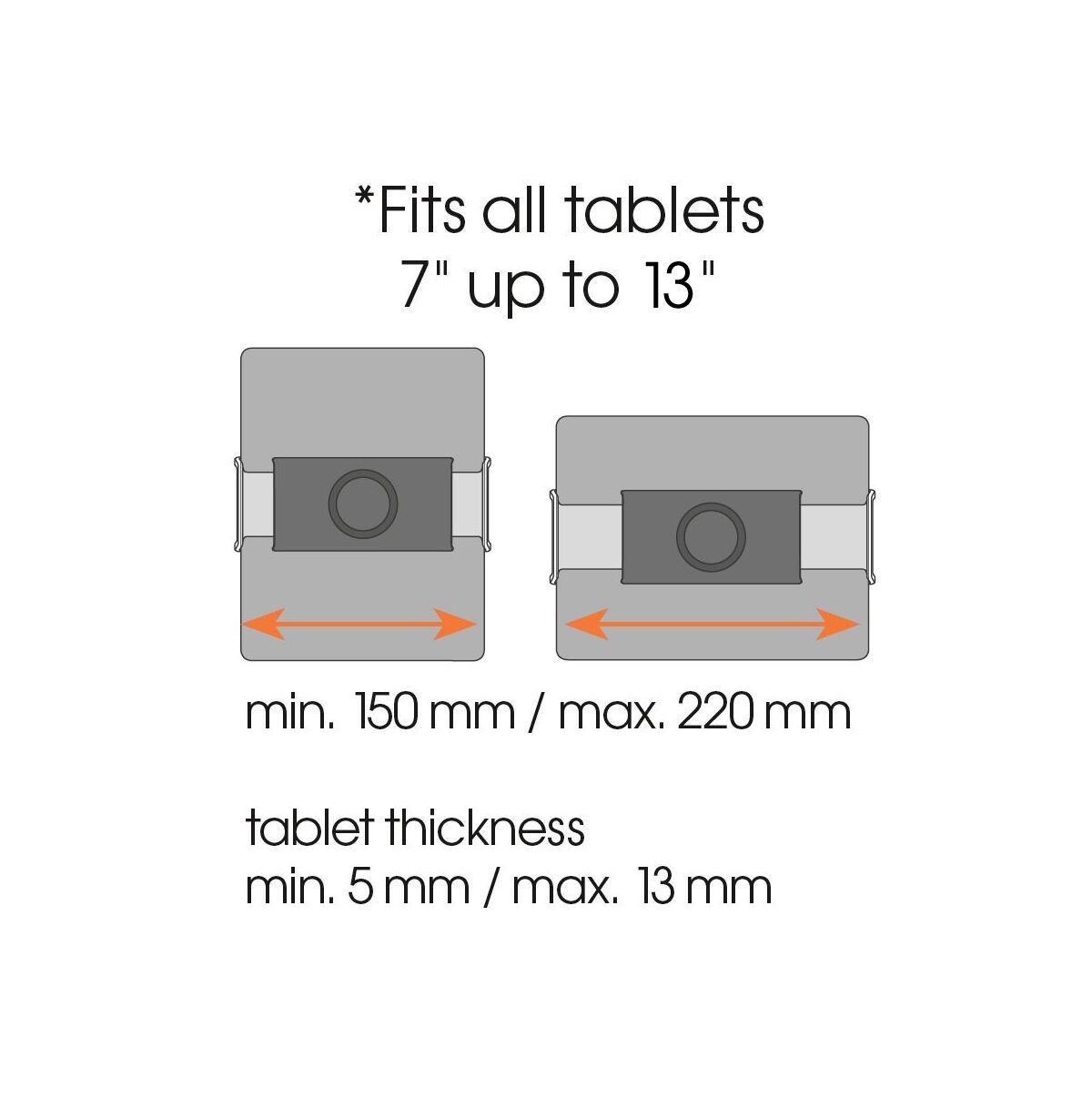 The stylishly designed Vogel's tablet holder fits all tablets from 7-13 inches that are 0.2-0.5 inches (0.5-1.3 cm) thick. The pack comes with a tablet holder and two wall mounts.