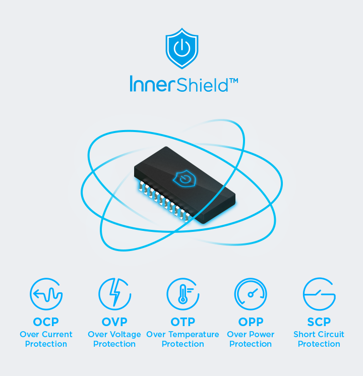 - InnerShield™ Only Innergie products come equipped with such powerful protections, oaring a level of security no other devices can match.