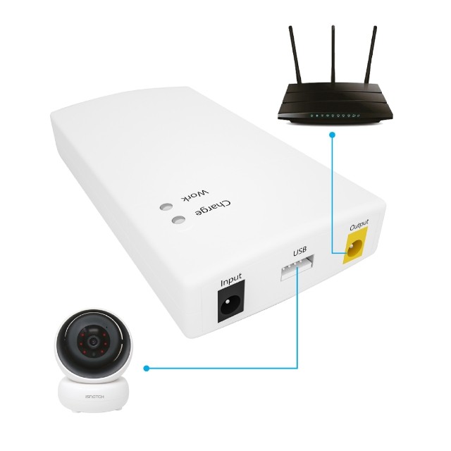 The integrated 7800 mAh battery pack provides backup autonomy of up to 3h (max. 30w). Particularly suitable for routers, WI-FI access points or DVR recorders and CCTV cameras to continue browsing or keep your video surveillance system operational!