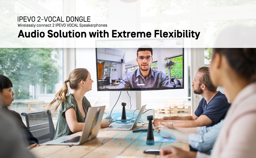 IPEVO 2-VOCAL DONGLE Wirelessly connects 2 IPEVO VOCAL and can be used as a standalone speakerphone or with IPEVO conferencing cameras. We recommend pairing VOCAL with TOTEM 120, 180, or 360 for a fully immersive conferencing experience.