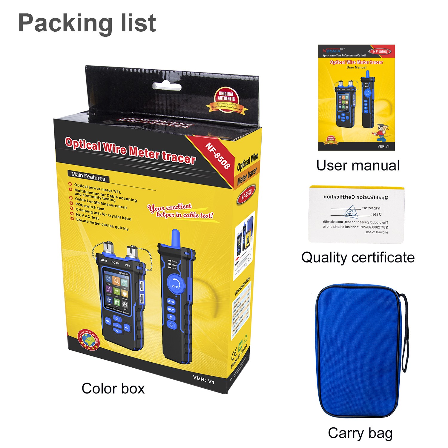 Noyafa Multi-Function Cable Tester - NF-8508 - RJ11, RJ45, PoE, Fiber Optic OPM VFL, NCV & Cable Length Measurement